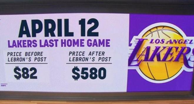 白买了!詹姆斯公布“决定二”前,湖人收官战票价升至580美元